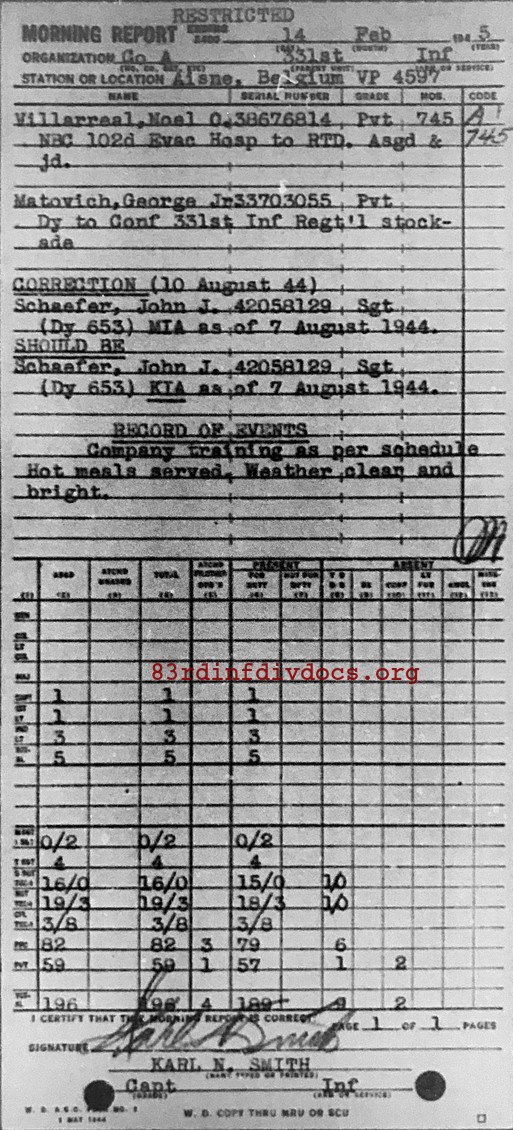 Morning report A/331 for February 14, 1945