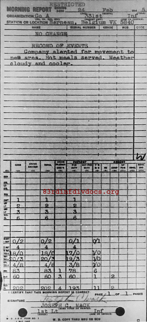 Company alerted for movement to new area. Hot meals served. Weather cloudy and cooler.