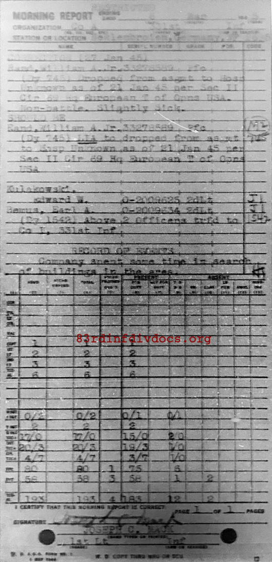 Morning report A/331 for March 6, 1945