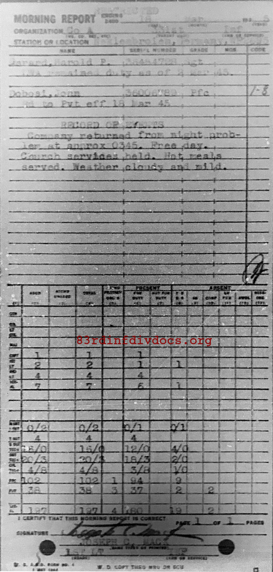 Morning report A/331 for March 18, 1945