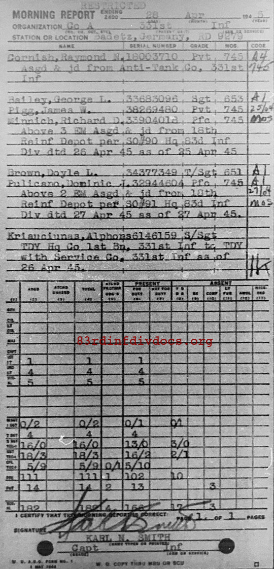 Morning report A/331 for April 28, 1945