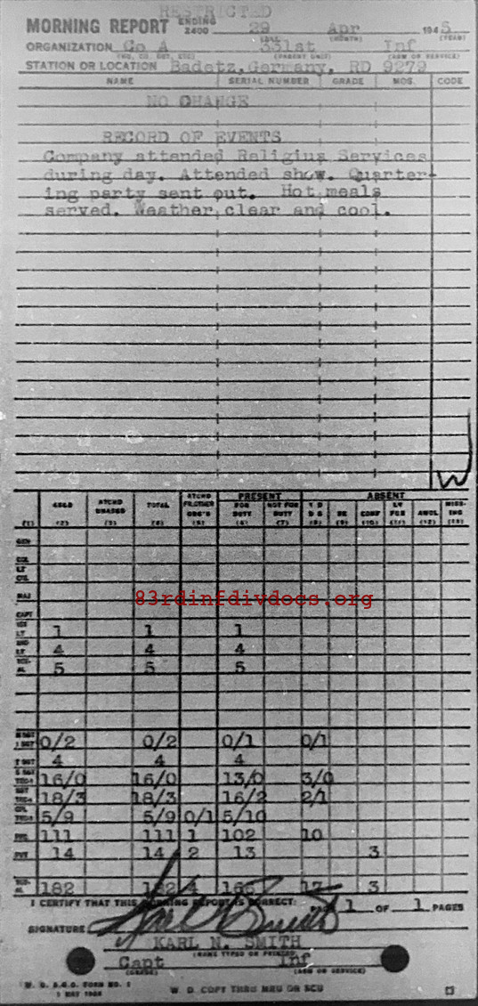 Morning report A/331 for April 29, 1945