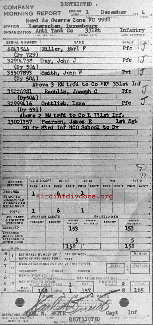 Morning report ATCO/331 for December 1, 1944
