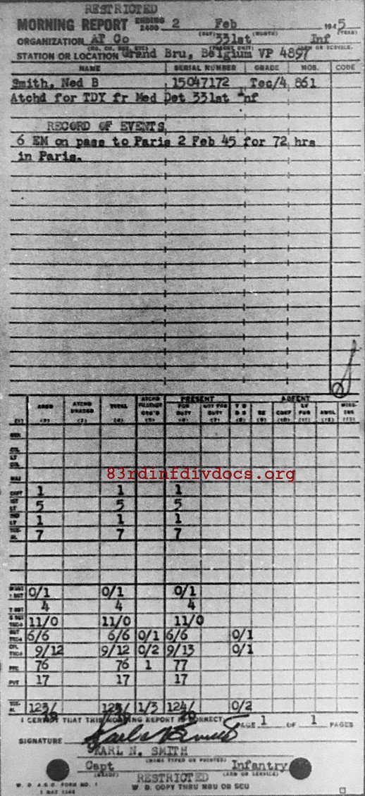 6 EM on pass to Paris 2 Feb 45 for 72 hrs in Paris.