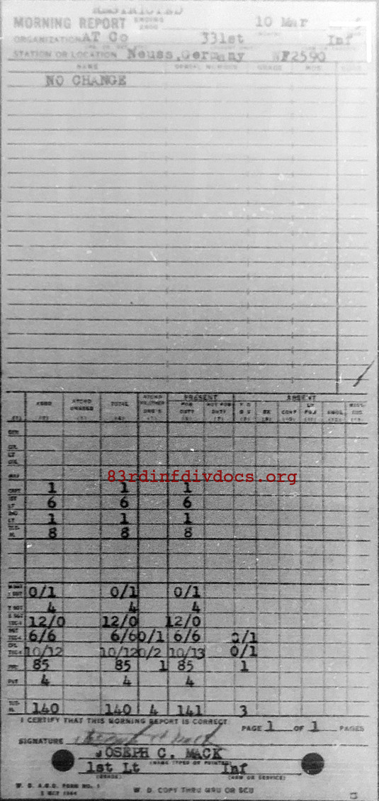 Morning report ATCO/331 for March 10, 1945
