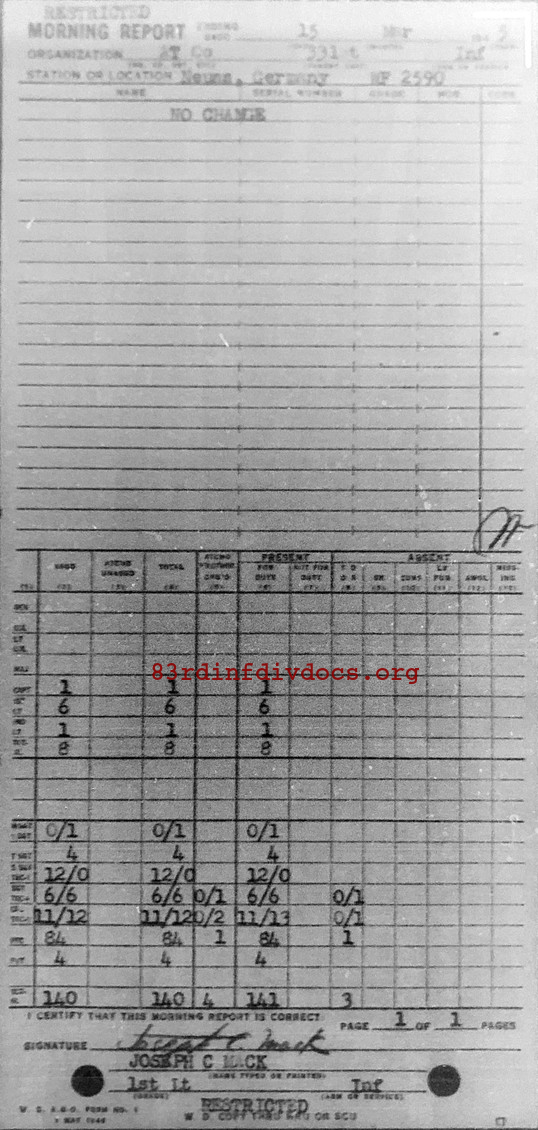 Morning report ATCO/331 for March 15, 1945
