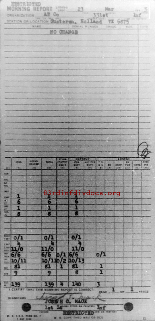 Morning report ATCO/331 for March 23, 1945