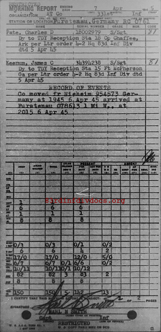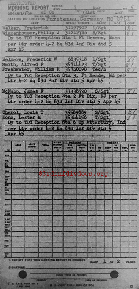 Morning report ATCO/331 for April 7, 1945
