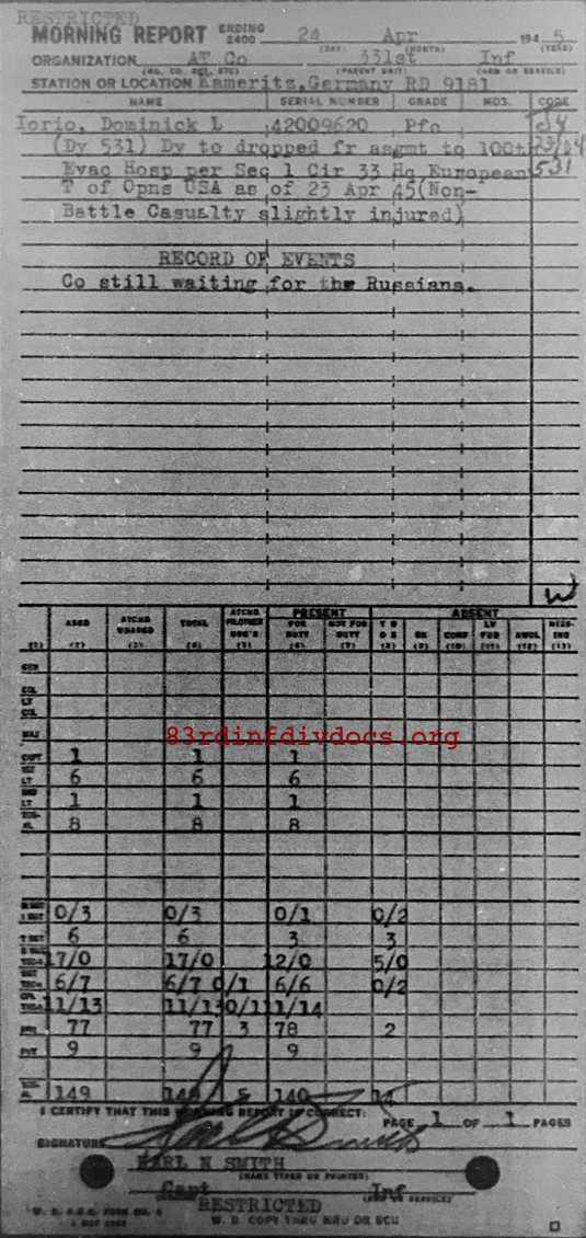 Morning report ATCO/331 for April 24, 1945