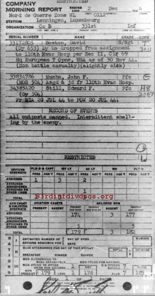 Morning report B/331 for December 2, 1944