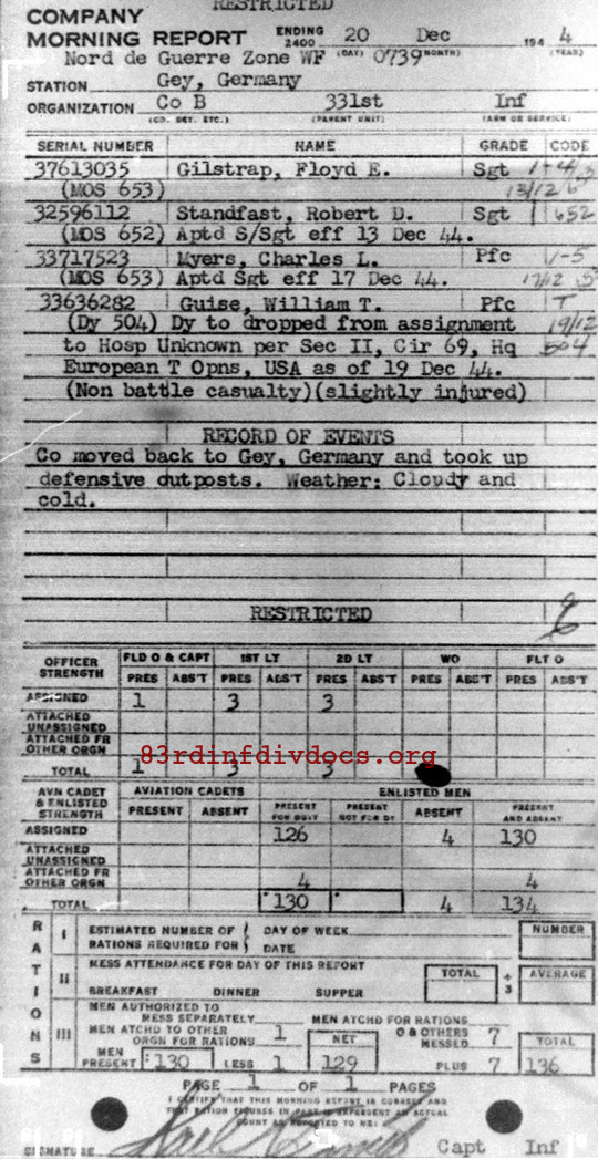 Morning report B/331 for December 20, 1944