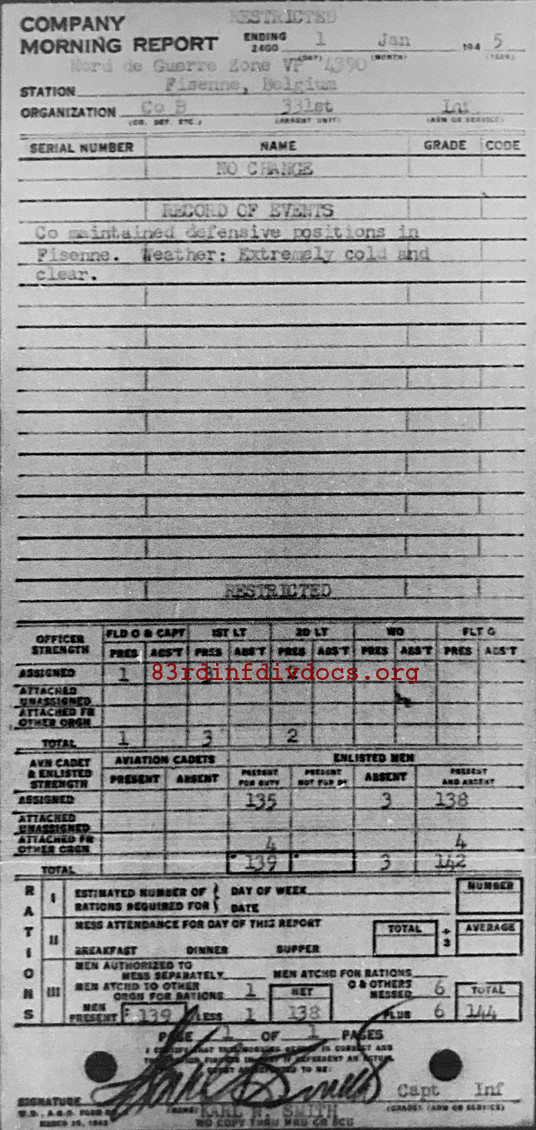 Morning report B/331 for January 1, 1945