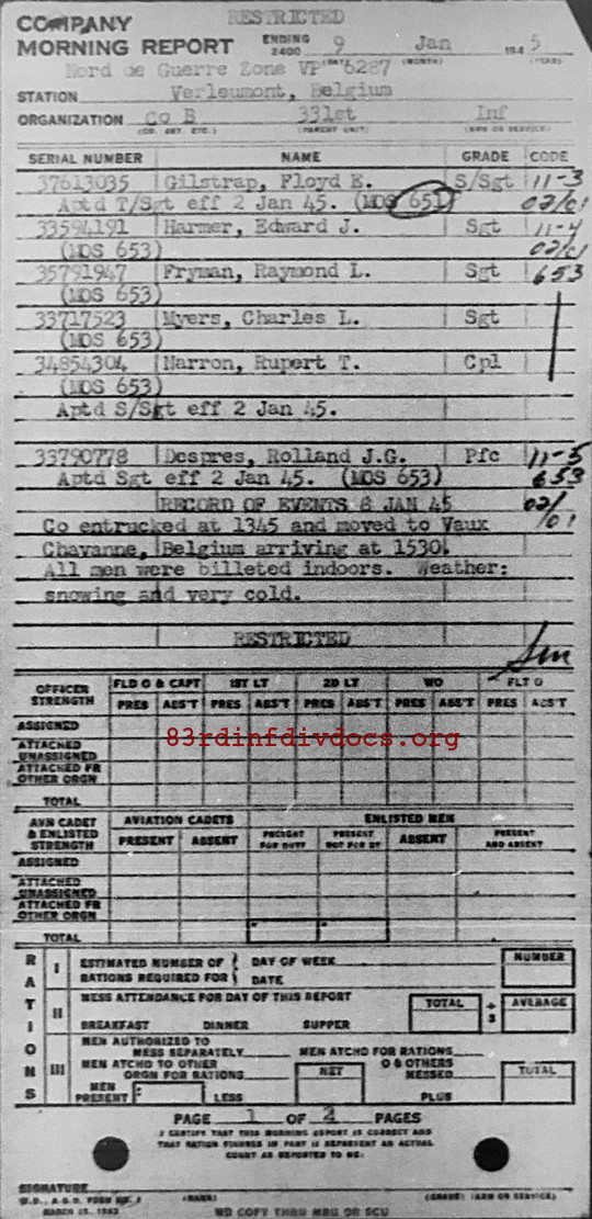 Morning report B/331 for January 9, 1945