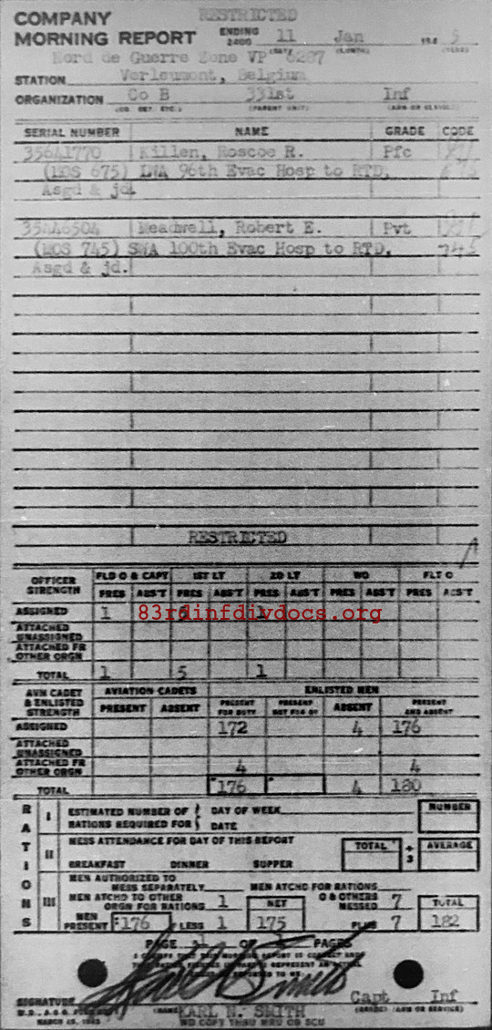 Morning report B/331 for January 11, 1945