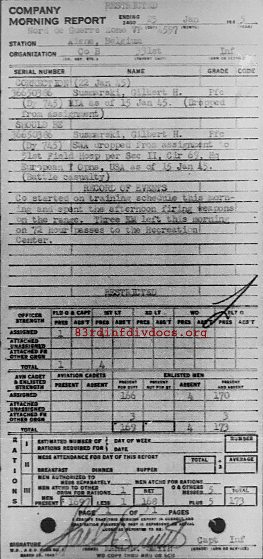 Morning report B/331 for January 25, 1945