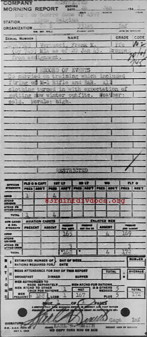 Morning report B/331 for January 26, 1945