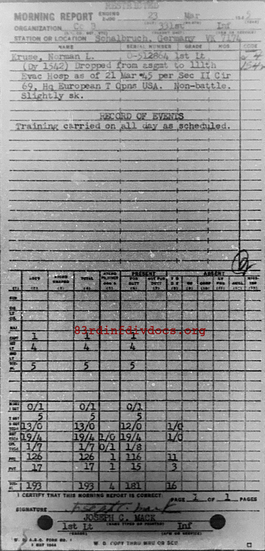 Morning report B/331 for March 23, 1945