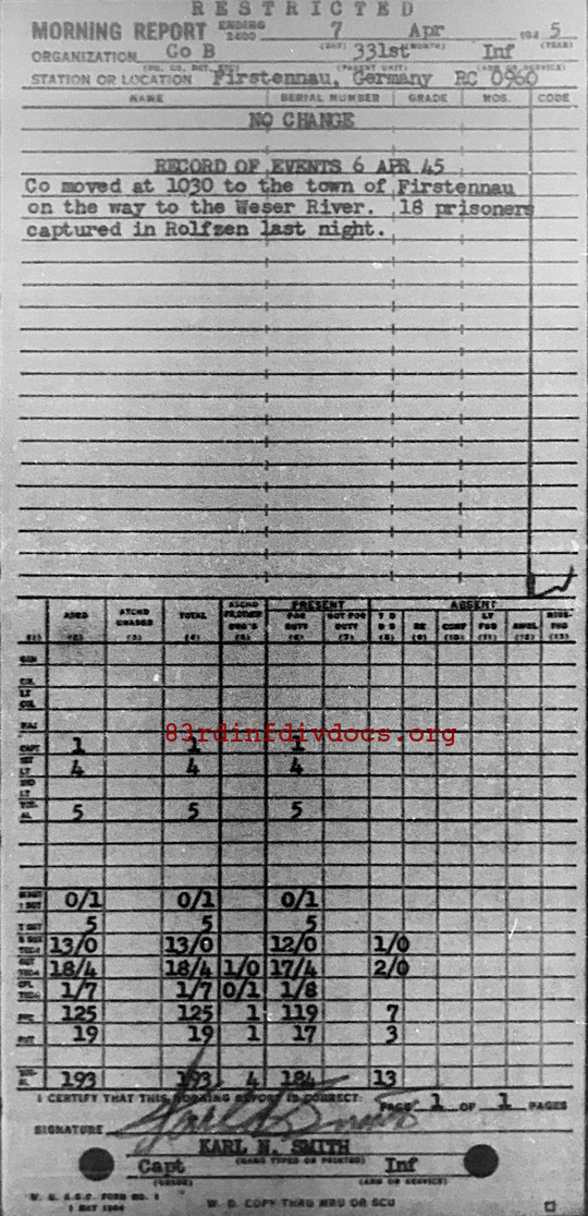 Morning report B/331 for April 7, 1945