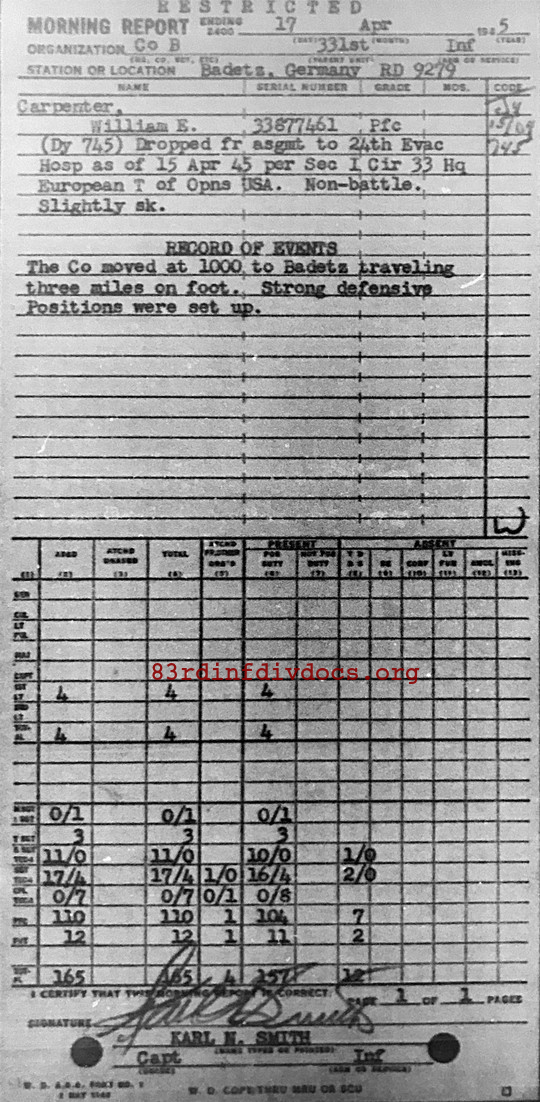Morning report B/331 for April 17, 1945