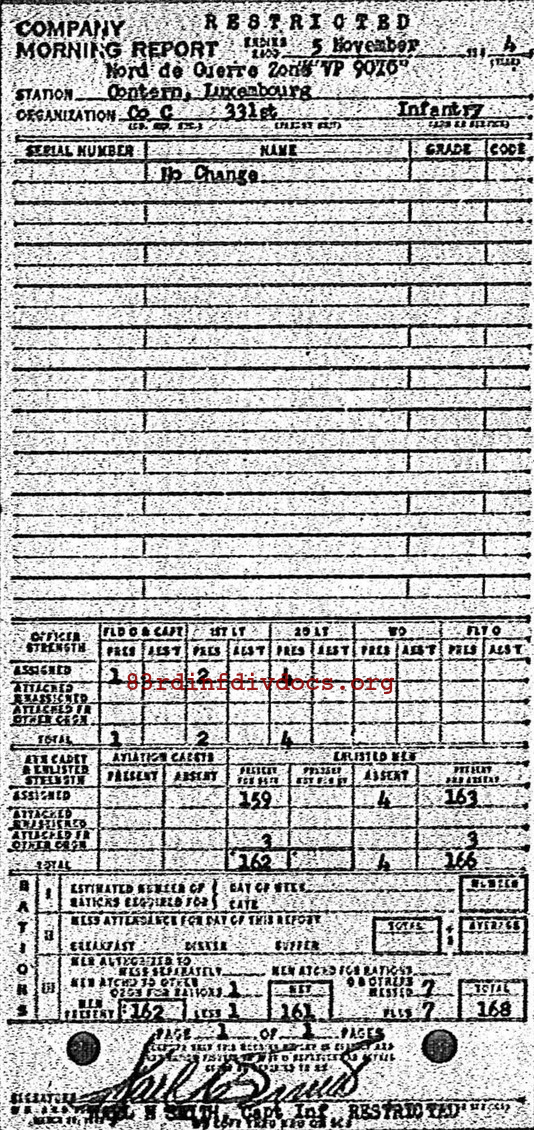Morning report C/331 for November 5, 1944