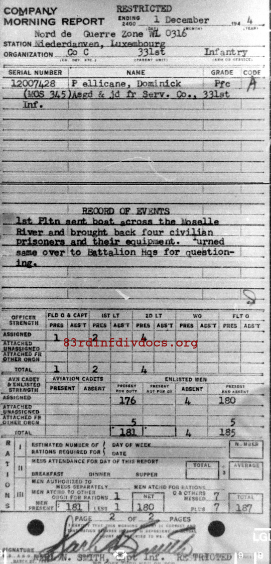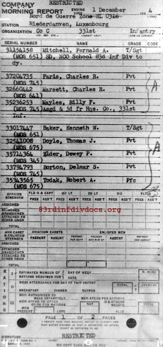 Morning report C/331 for December 1, 1944