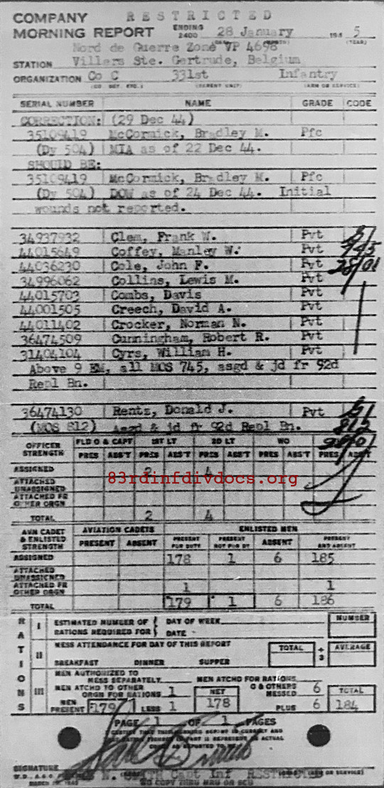 Morning report C/331 for January 28, 1945