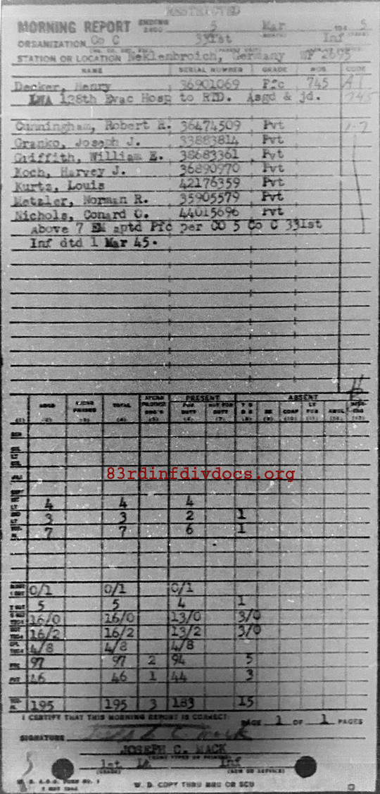 Morning report C/331 for March 5, 1945