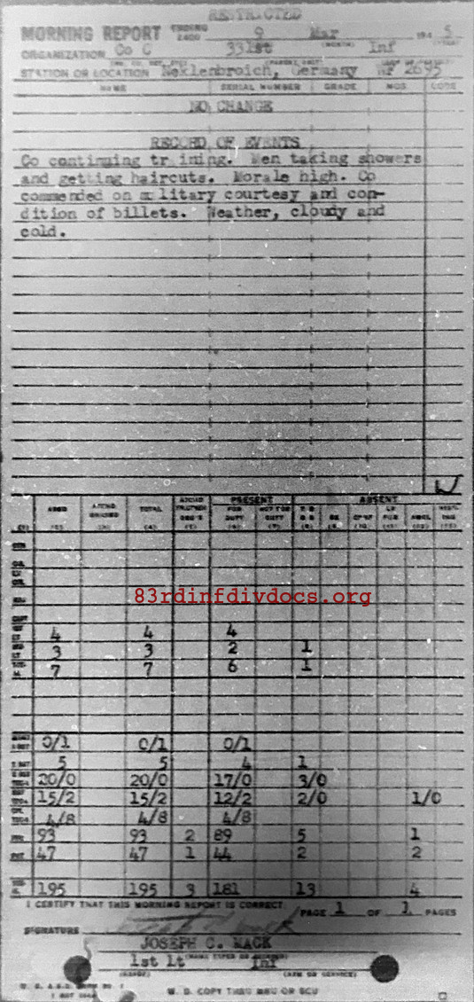 Morning report C/331 for March 9, 1945