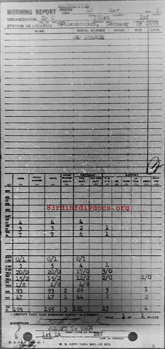 Morning report C/331 for March 10, 1945