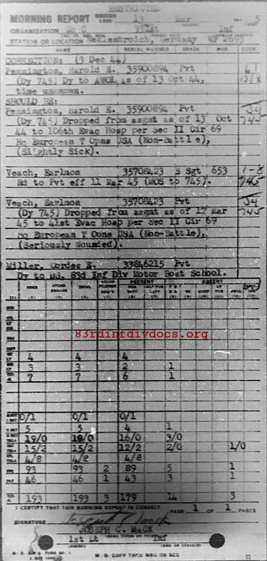 Morning report C/331 for March 13, 1945