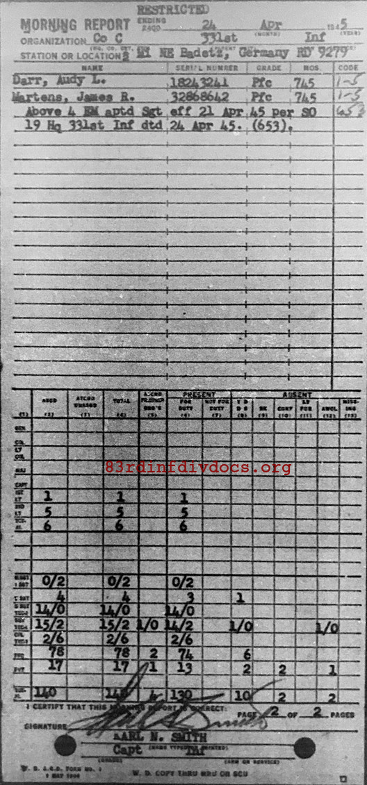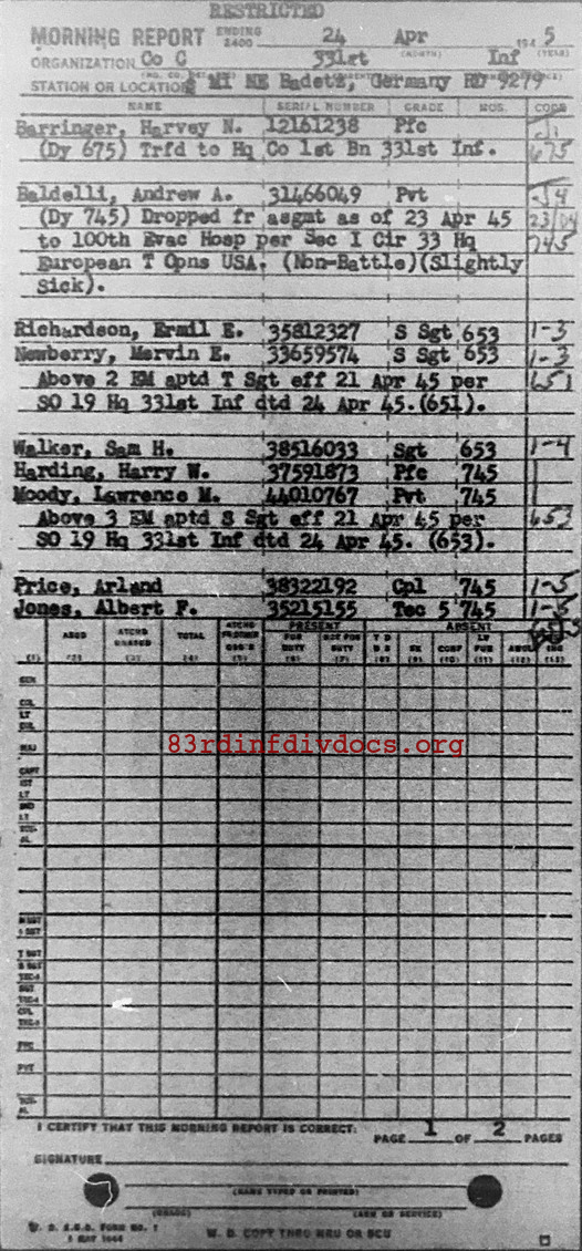 Morning report C/331 for April 24, 1945