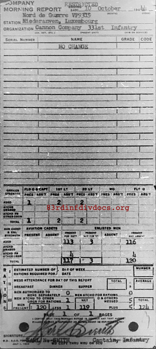 Morning report CANCO/331 for October 10, 1944
