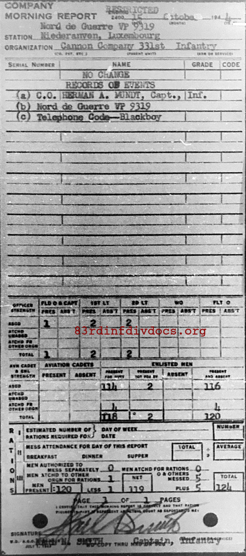 Morning report CANCO/331 for October 15, 1944