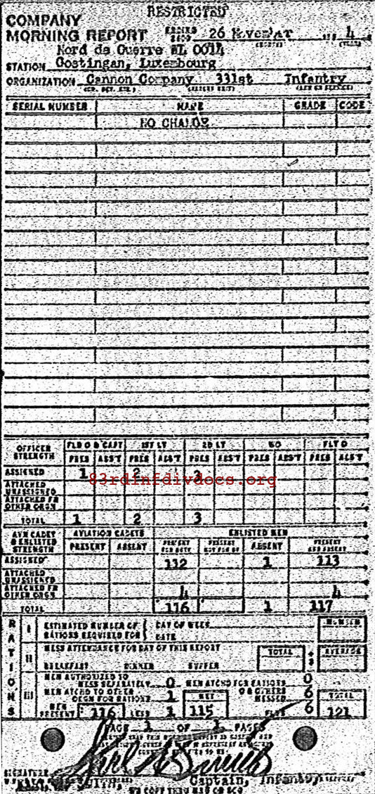 Morning report CANCO/331 for November 26, 1944