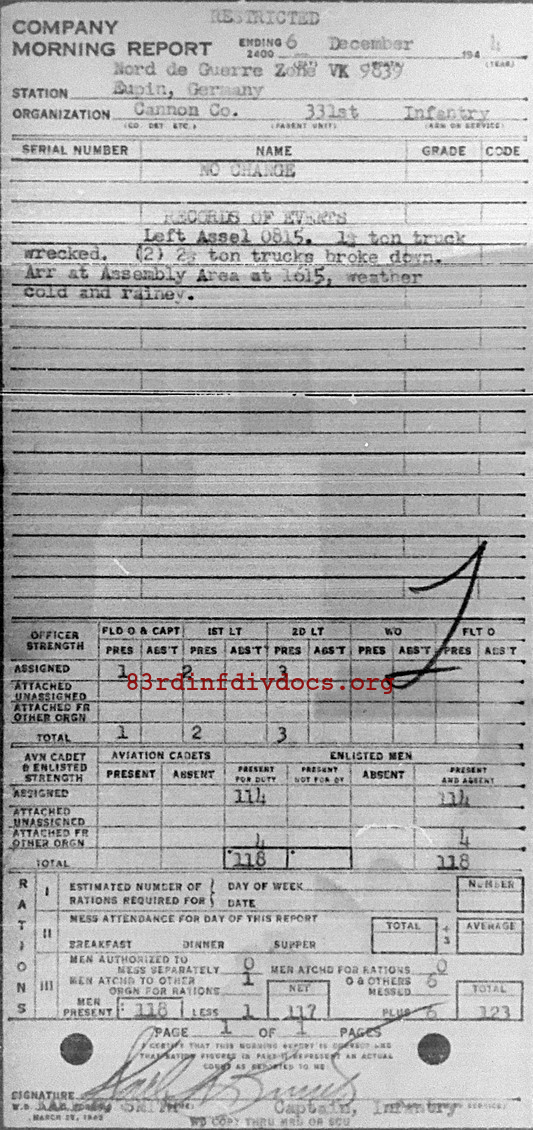 Morning report CANCO/331 for December 6, 1944