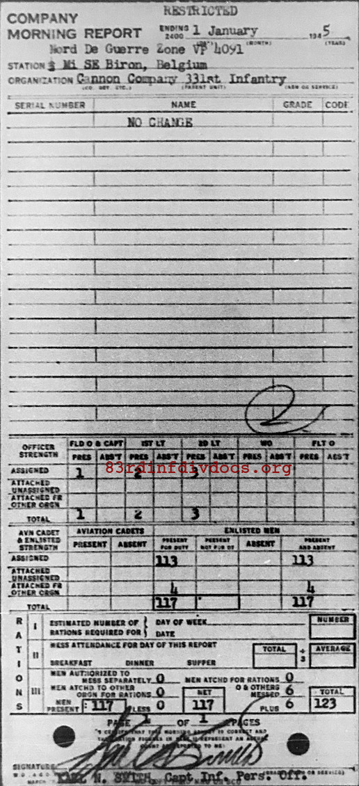 Morning report CANCO/331 for January 1, 1945