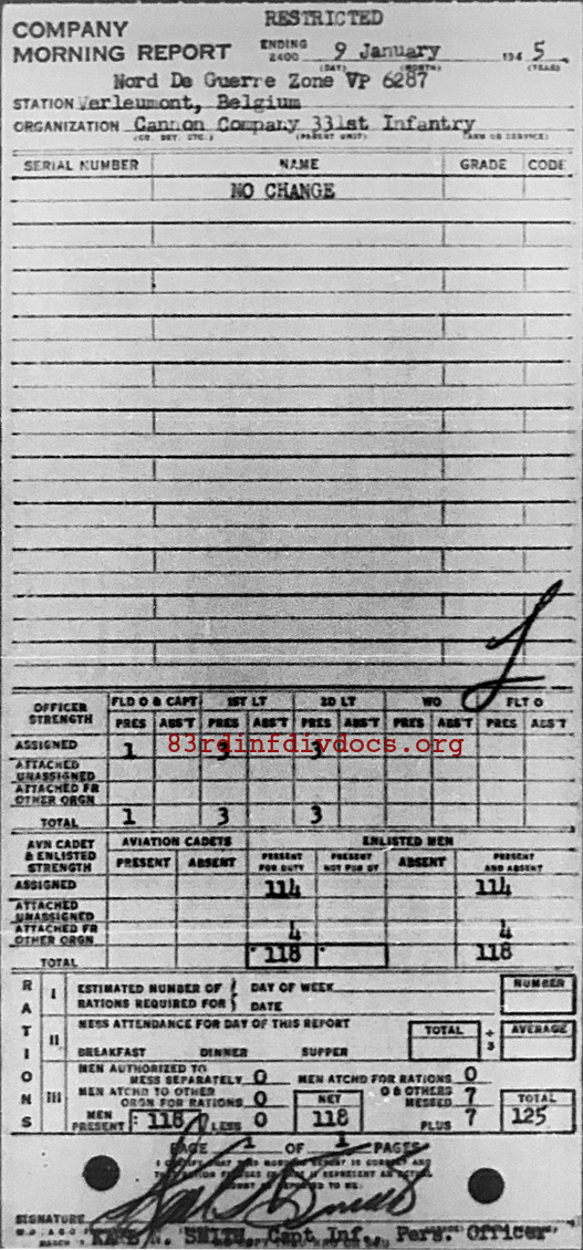 Morning report CANCO/331 for January 9, 1945