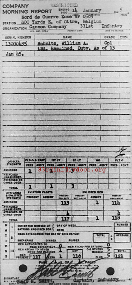 Morning report CANCO/331 for January 14, 1945