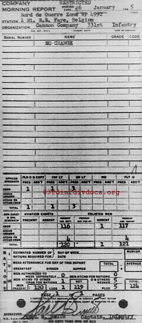 Morning report CANCO/331 for January 26, 1945