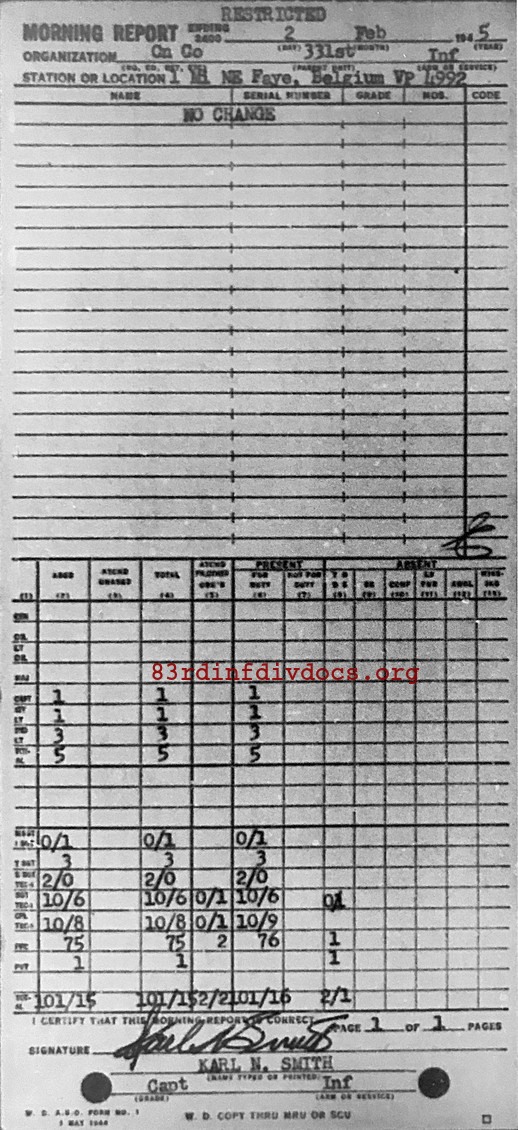 Morning report CANCO/331 for February 2, 1945