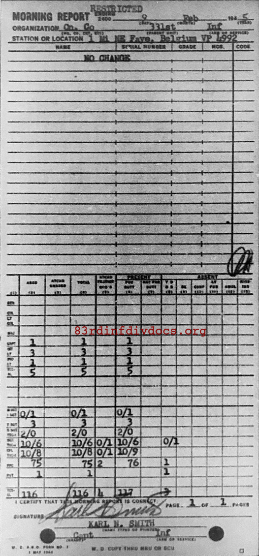 Morning report CANCO/331 for February 9, 1945