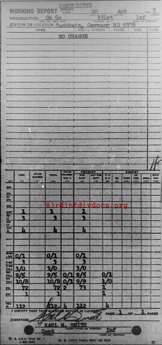 Morning report CANCO/331 for April 20, 1945