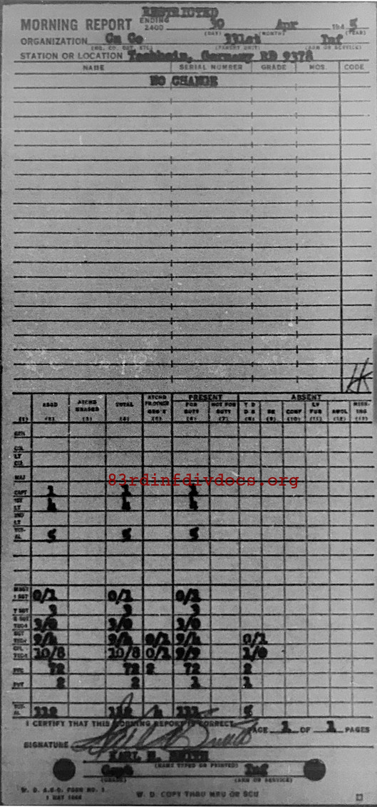 Morning report CANCO/331 for April 30, 1945