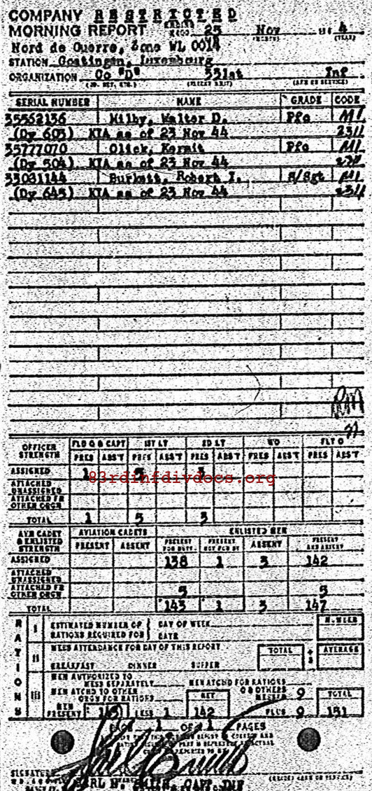 Morning report D/331 for November 25, 1944