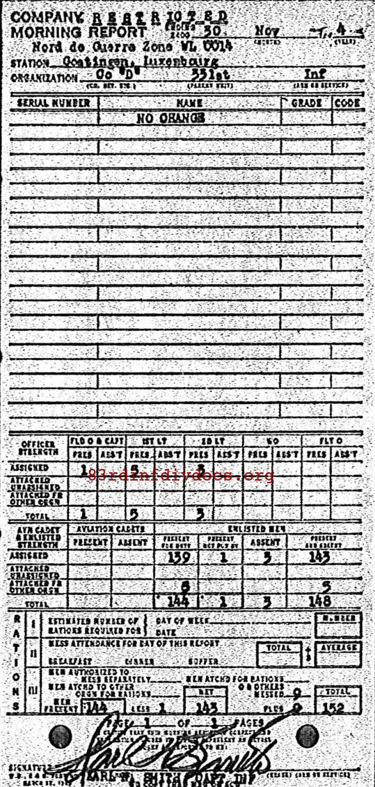 Morning report D/331 for November 30, 1944