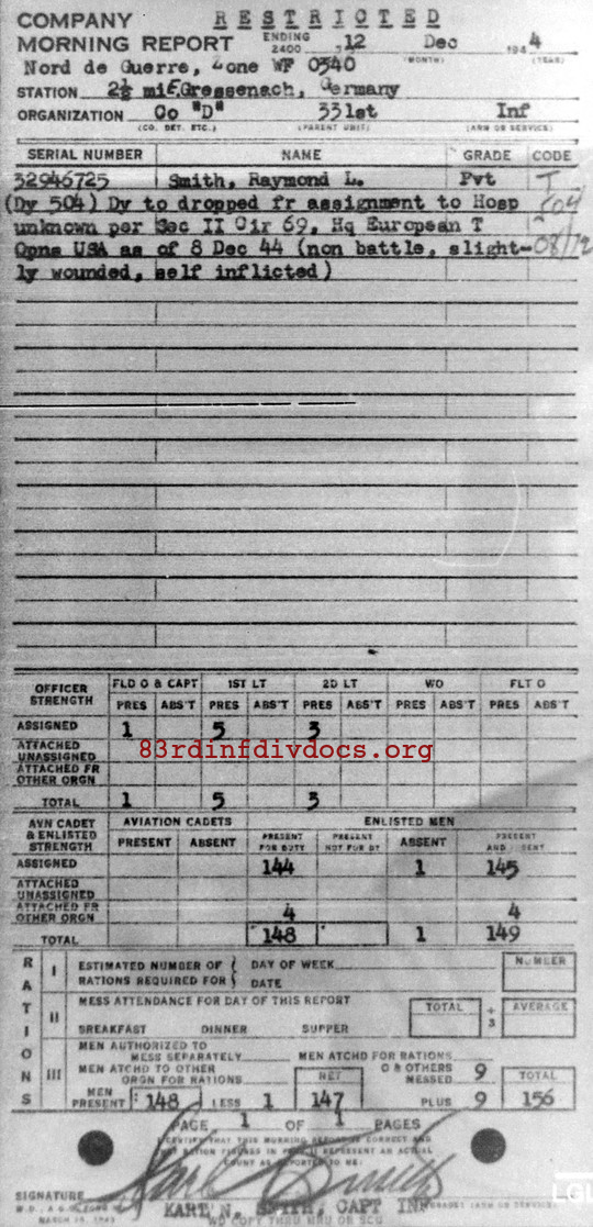 Morning report D/331 for December 12, 1944