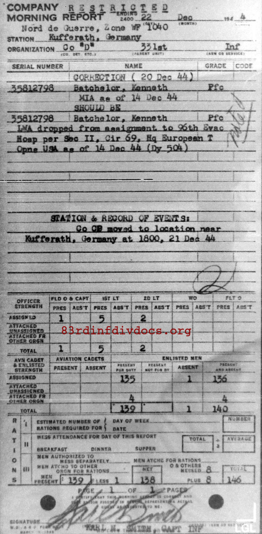 Morning report D/331 for December 22, 1944