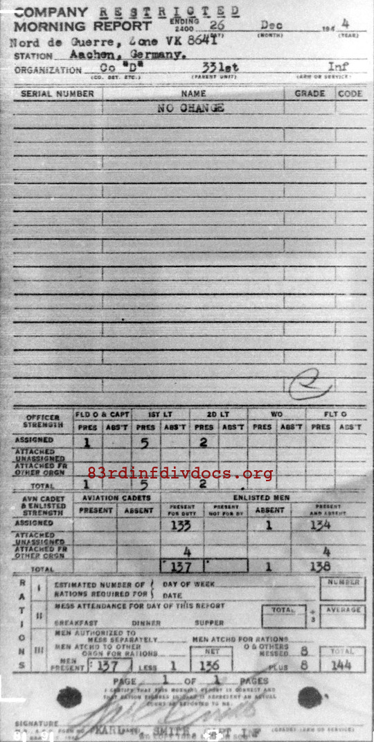 Morning report D/331 for December 26, 1944