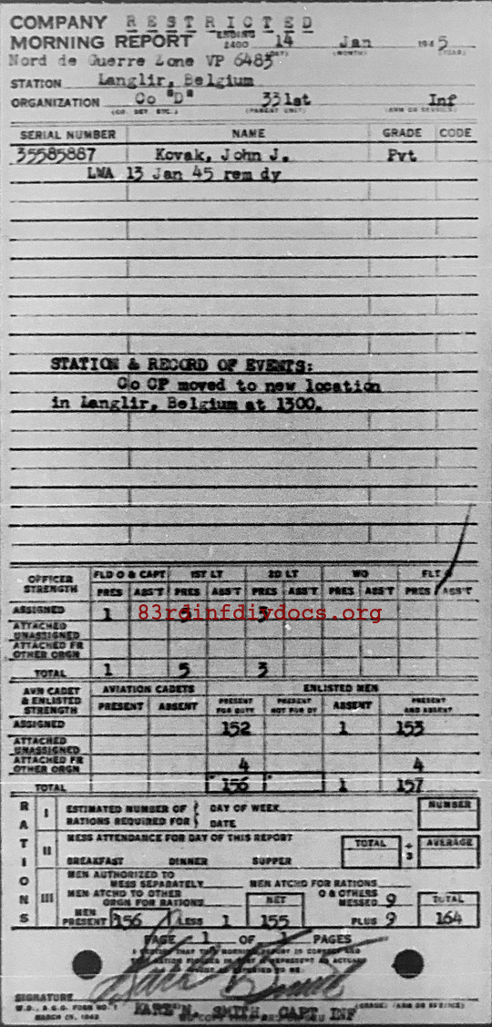 Co CP moved to new location in Langlir, Belgium at 1300.