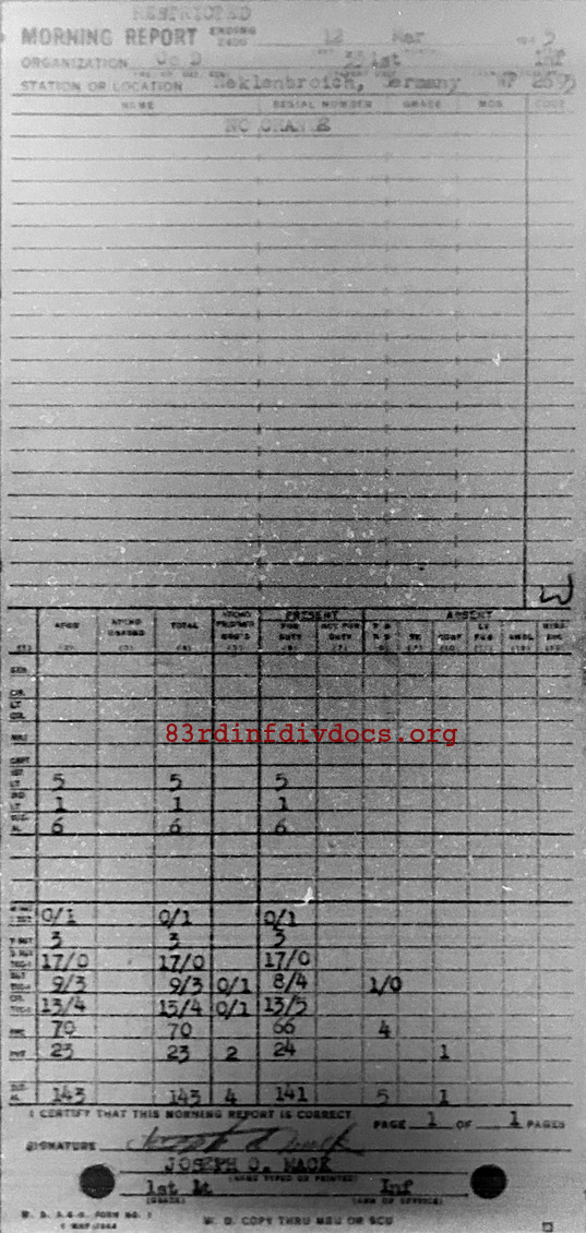 Morning report D/331 for March 12, 1945